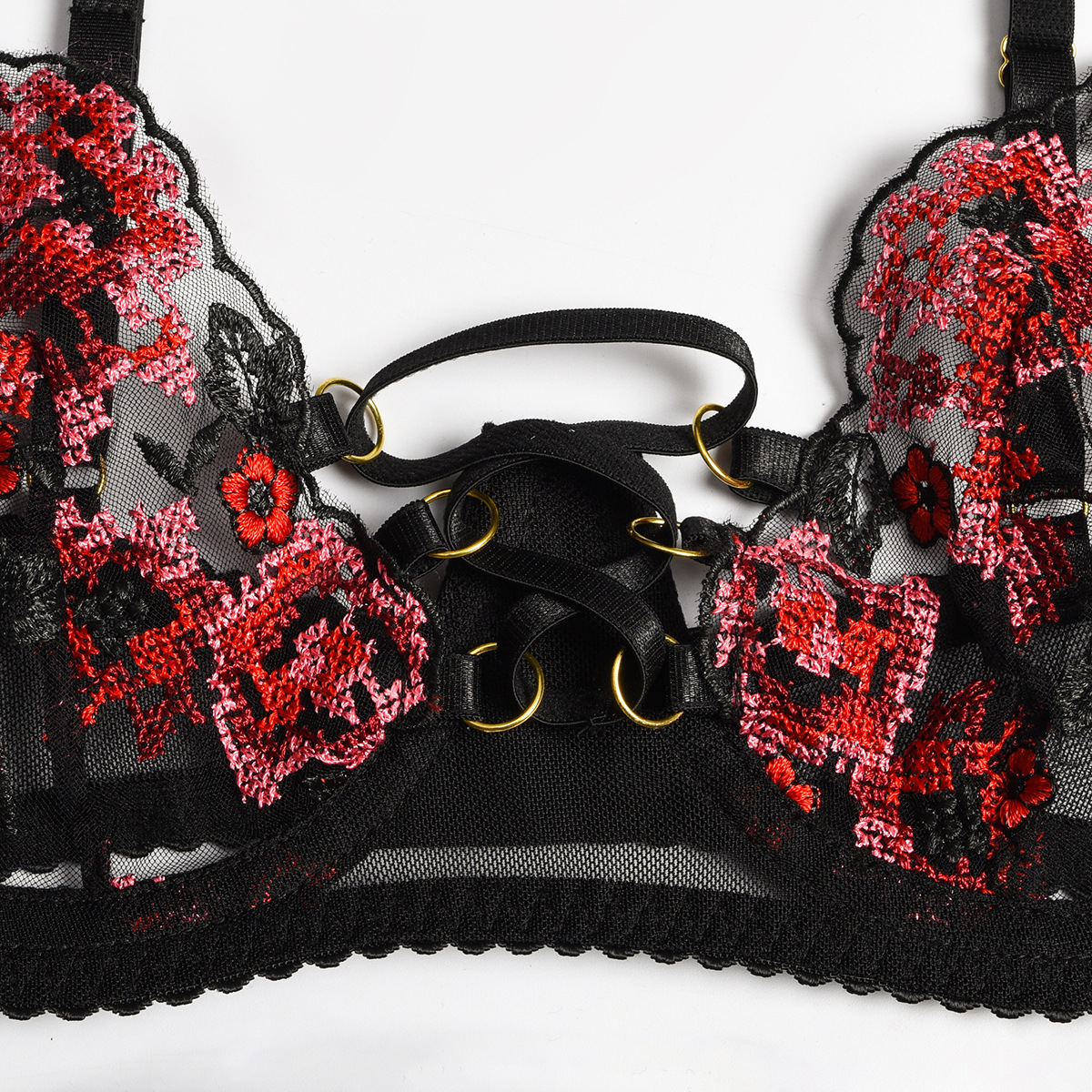 3PCS Floral Embroidered Lace Garter Lingerie Set