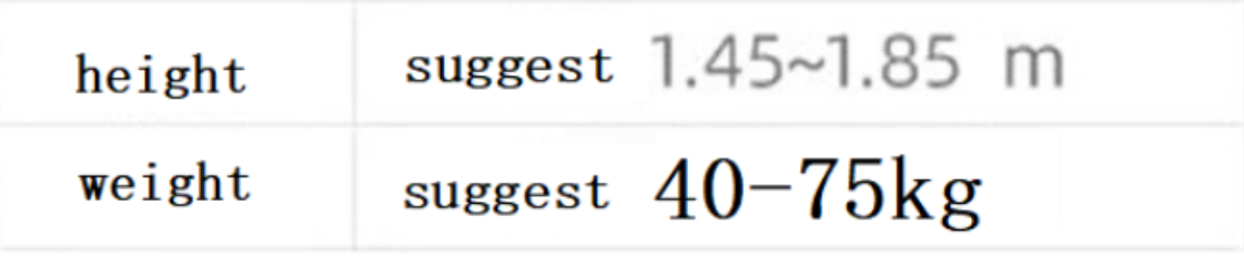 | M | 8-10 | 34C/D,36B/C | 36.5-37.5 | 29.5-30.5 | 39.5-40.5 | 61-63 |
